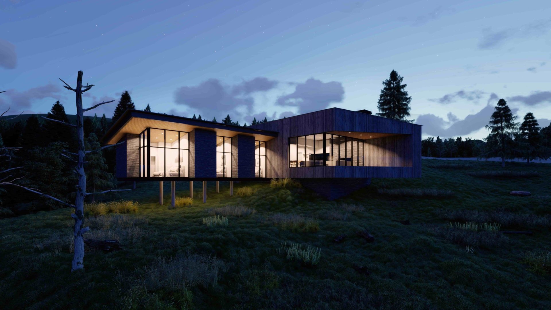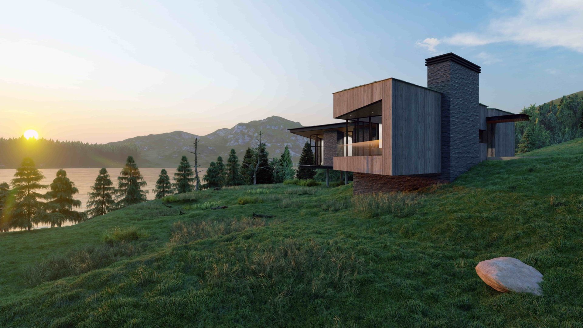 Our goal was to create a residence that harmoniously blends with the natural surroundings, appearing as though it has always been part of the landscape.