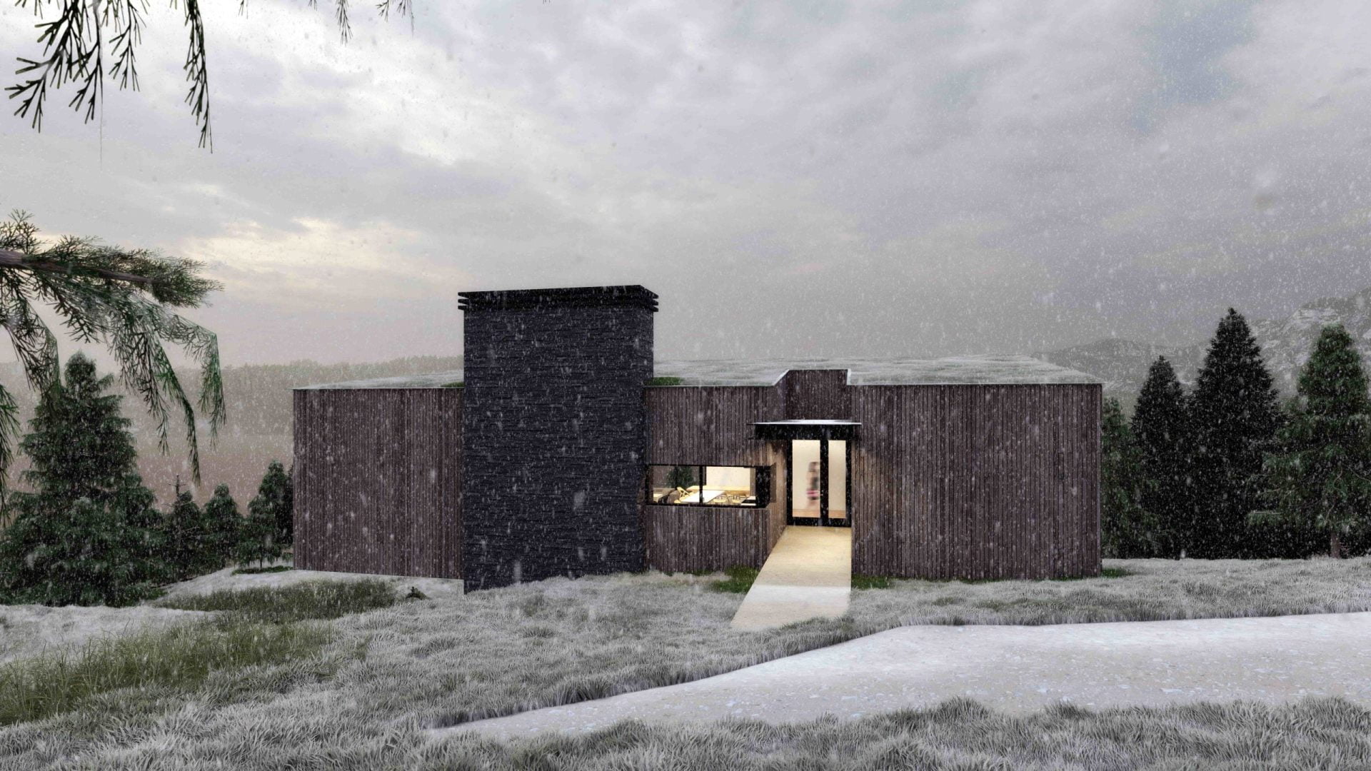 The material selection was based on the local building traditions and vernacular architecture with a focus on wood, stone, and metal to create a design that is both iconic and timeless.