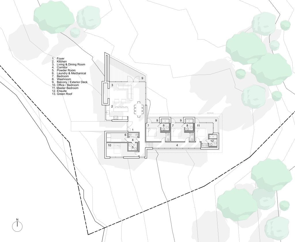 The house is located in Chapel Arm, NL, and sits in a significantly sloped site towards the water. The main challenge was to design a unique home that would adapt to the geography and maximize views of the ocean.